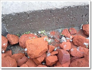 レンガ砕の中に何か見えると思って、ちょっとよけてみたら・・