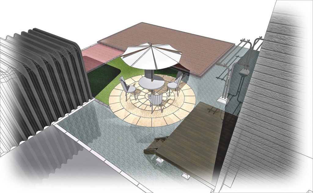 こんな風になる予定で、現在土間コンクリートの型枠と曲線が綺麗なレンガ仕切を設置中であります!