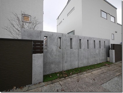 塗壁の上には雨だれ跡がつくのを防止するためにプライムキャップを設置し、それらの質感ギャップを補完するためのアルミフェンスがかなり高級感を倍増させる効果を発揮しています。(RCも濡れていたり、曇天だったりと画像は良くないですが、晴天に撮影すれば相当ステキな絵になるはず!)