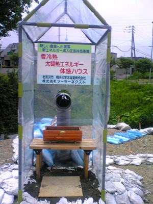 雪堆積場の雪冷気を利用した、雪冷房です。