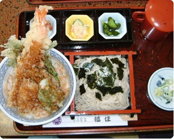 食べ方は、最初にざるそばを半分ほど食べて、その後に天丼を一気に