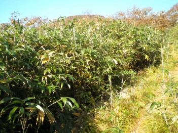 三合目まで、アップダウンを繰り返す。下るのが少しもったいない。三合目を過ぎたあたりから、ブナ林になる。五合目を過ぎたあたりから、展望が開け、目指すカニカン岳が近づいてくる。