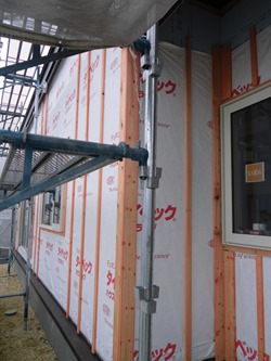 次に、透湿防水シートとしてタイベックシートを施工しています。