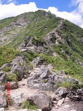 結構アップダウンがあり、また途中何か所か岩稜があり、油断はできません。