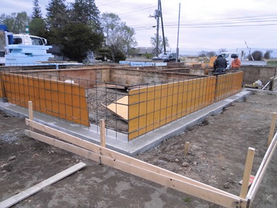 基礎の全体が固まったら、基礎の立ち上がりの検査を行い、立ち上がりコンクリートの打設を行いました。