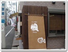 打ちっぱなしコンクリートのチョイおしゃれな店構えに「鯛勝」って書いたドデカい看板。